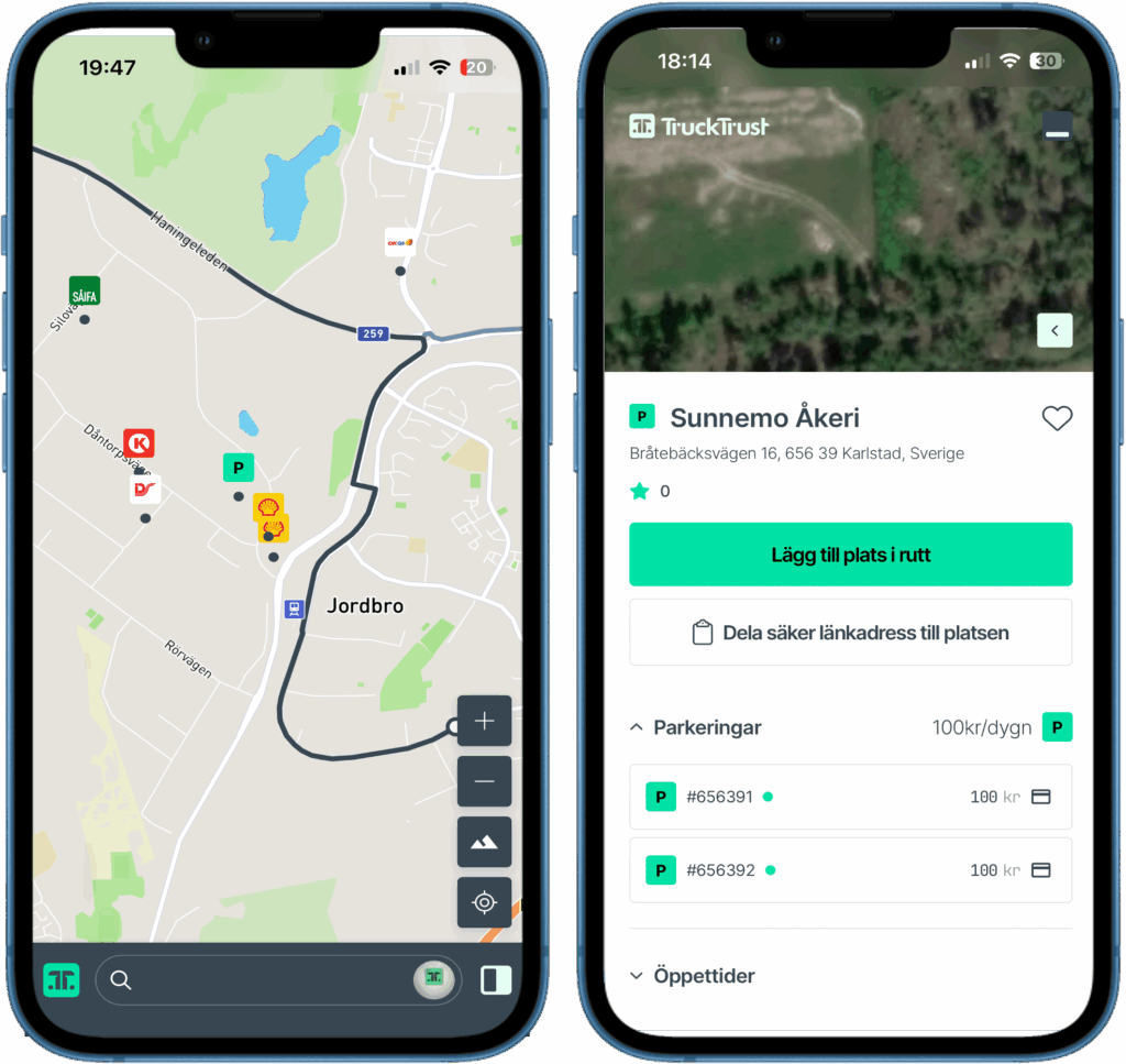 Hitta och boka privata parkeringar (endast TrustedTrucker)